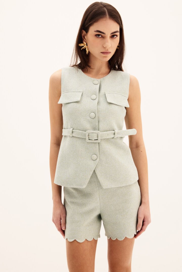 TAILORED VEST WITH SNAP BUTTONS AND BELT