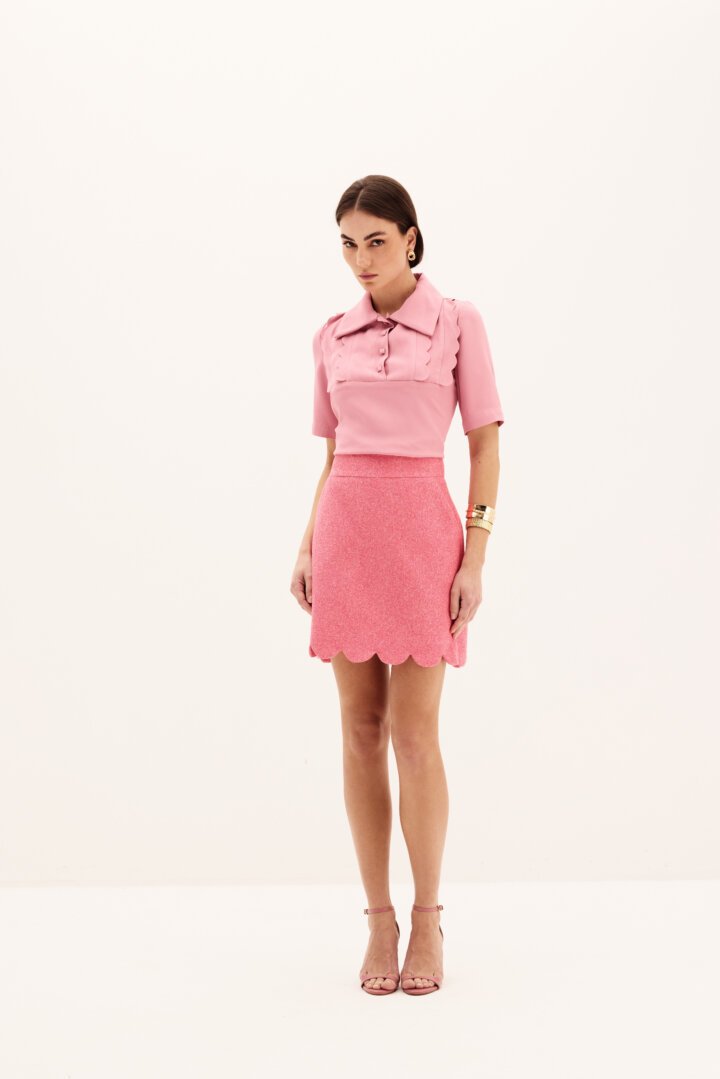 TEXTURED COTTON SKIRT WITH WAVE DETAILS